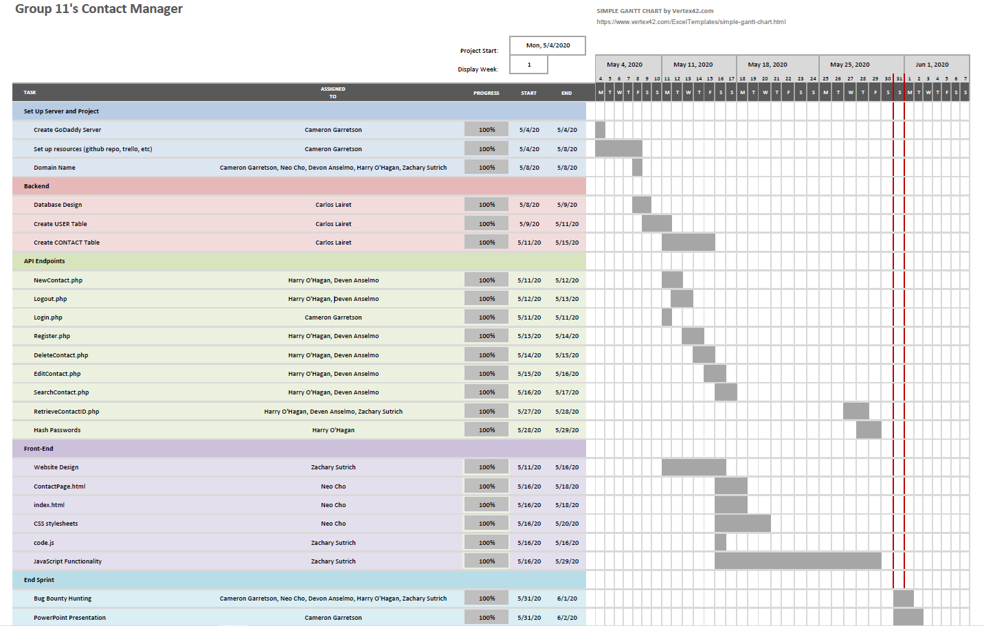 Below is the Gantt chart used during the production of the project.