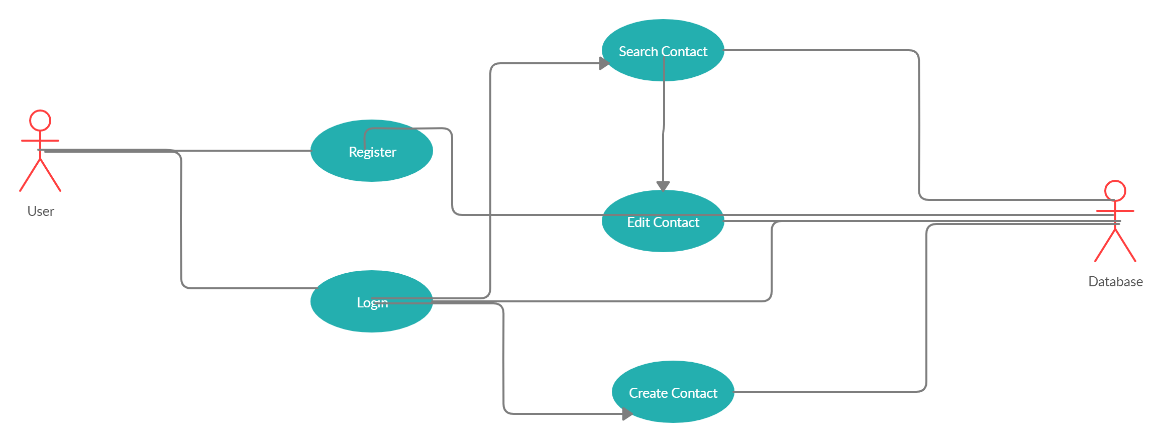 The web app is designed for a user to register and login to his or her account, where the user can then add, edit, and delete contacts with ease. The use of API Endpoints allowed the team to achieve a dialog between the user and the database. Below is the corresponding Use Case Diagram.
